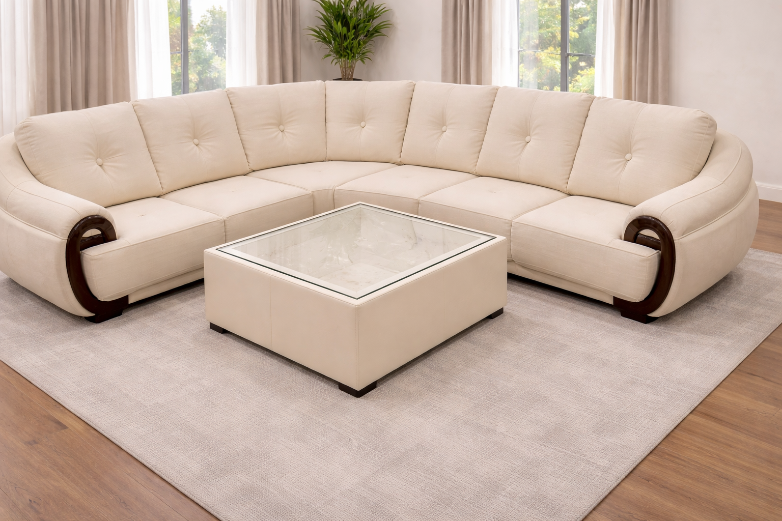 AIF219- Sofa Set L Shape Double Pillow Side Wood 3+2+CR+CT+PFY(Palau 6506)