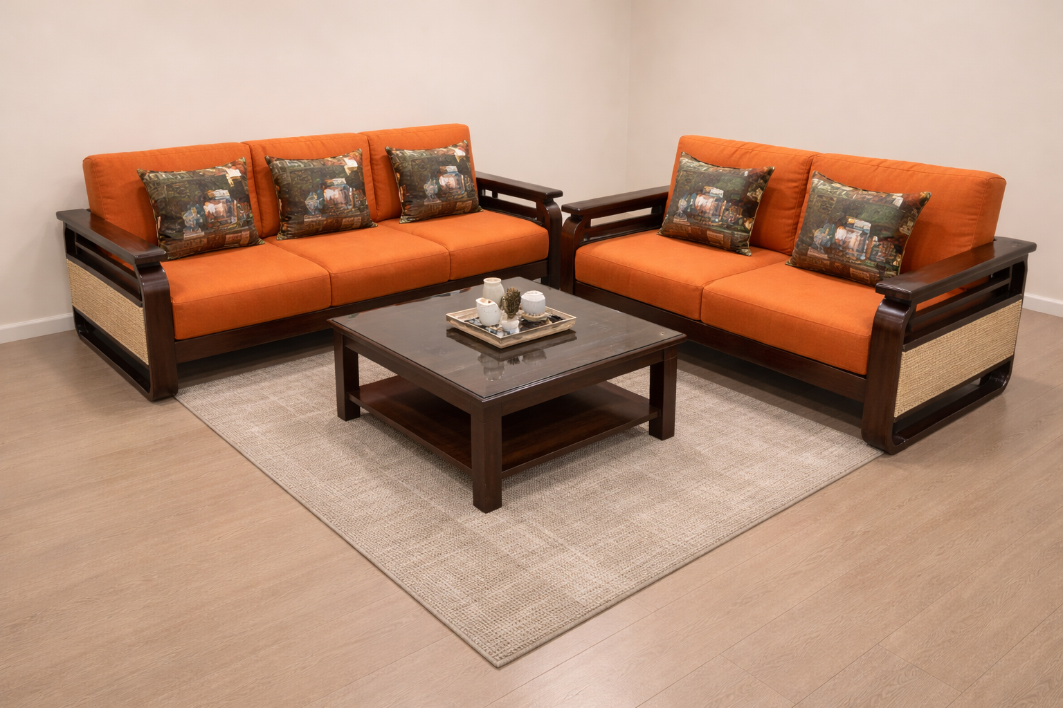 VFSF87- Wooden Sofa Set Side Cane Model 3+1+1
